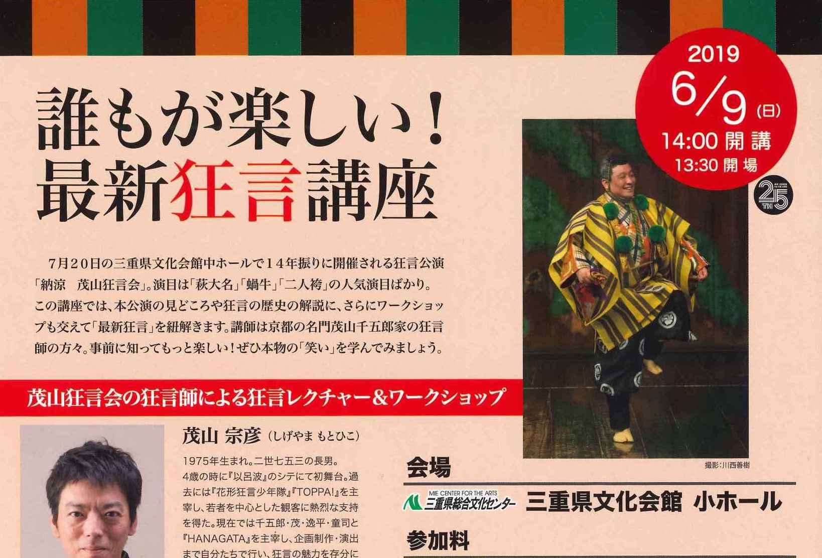 7月20日の三重県文化会館中ホールで開催される狂言公演のプレ…
