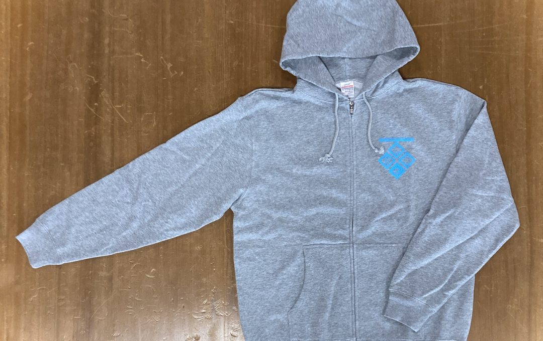 その中で好評だったパーカーを、人気色をセレクトして「グレー地にブルー」を販売することになりました!!