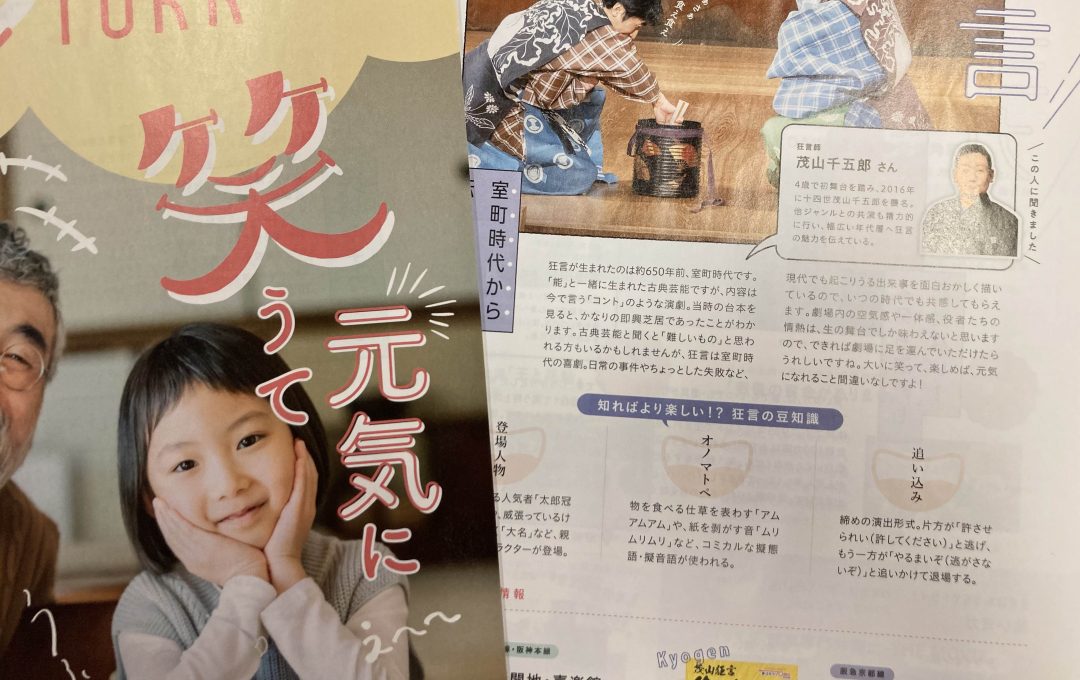 健康づくりに役立つ情報を掲載される、阪急阪神沿線の情報誌「Well TOKK」23号、特集「笑うて元気に」に狂言を取り上げていただきました。