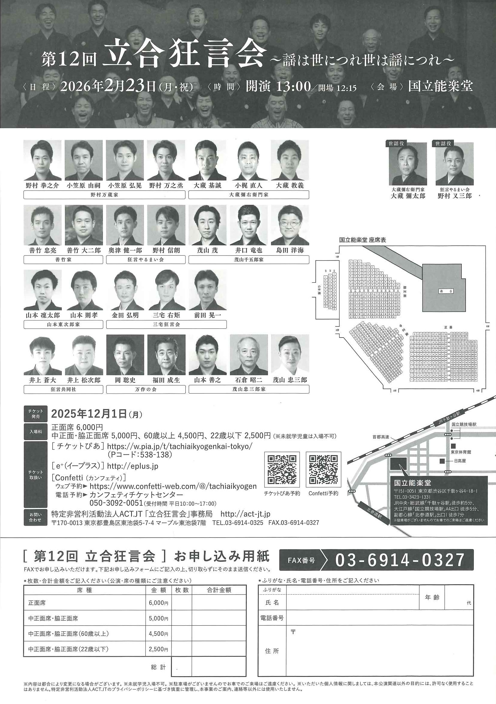 第12回 立合狂言会 謡は世につれ世は謡につれ