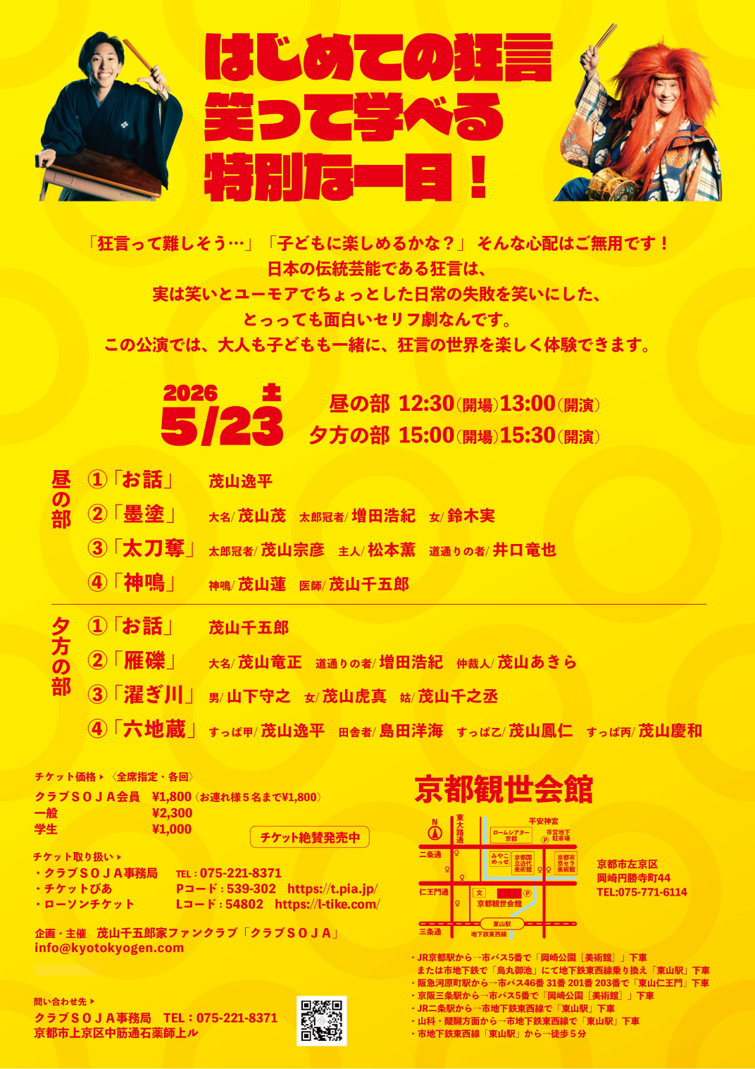茂山狂言会(クラブSOJA)事務局 075-221-8371